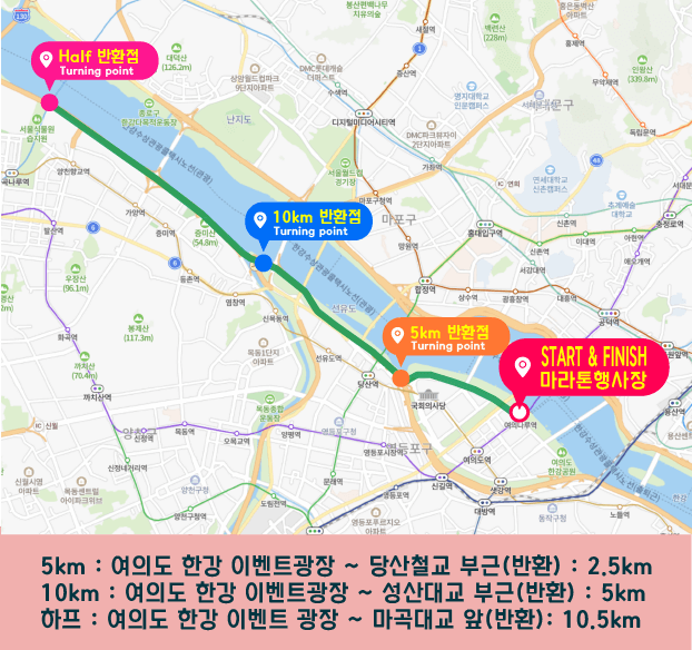 일시 : 2023년 05월 28일 (일요일) 하프, 10km, 5km 오전 9시에 출발합니다.